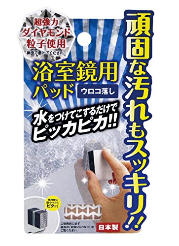 まず、鏡全体を水で濡らし、パッドも水に浸してから軽くこすり始めました。最初は本当に落ちるのか半信半疑でしたが、数回こすると、パッドの当たった部分が少しずつ透明になっていくのが目に見えて分かり、思わず「おおっ!」と声が出ました。力を入れすぎず、優しく円を描くように動かすのがコツだと感じましたね。白い研磨カスが出てくるので、それが汚れが落ちている証拠だと実感できます。 - 頑固なウロコ汚れへのアプローチ