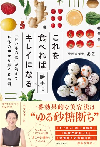 今回私が読んでみたのは、KADOKAWAから出版されている「これを食べれば勝手にキレイになる 「甘いもの欲」が消えて身体の中から輝く食事術」という書籍です。この本は、その名の通り、甘いものへの欲求を自然に抑え、身体の内部から美しさと健康を引き出すための具体的な食事術を提案する一冊となっています。価格は¥1,595で、健康的な食生活を目指す人々にとって、新しい視点と実践的なヒントを提供してくれる内容だと感じました。