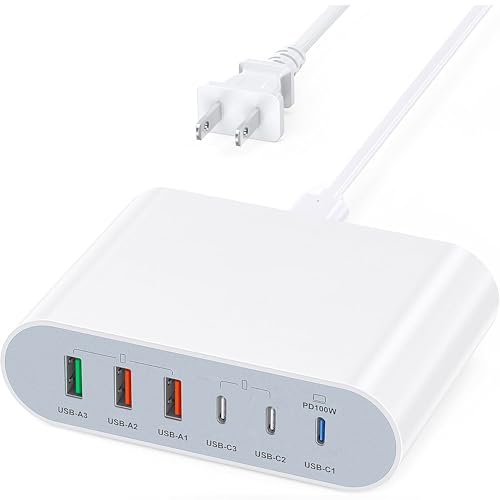 そんな悩みを解決すべく、高出力で多ポートの充電器を探していたところ、BREEKETの「合計最大185W USB コンセント 急速充電器 6ポート」を見つけました。決め手となったのは、単ポート最大100WのUSB-Cポートが3つ、USB-Aポートが3つと、合計6台ものデバイスを同時に充電できるパワフルさに加え、合計出力185Wという高出力。これ一つで全ての充電器を置き換えられるのではないかと期待して購入しました。
