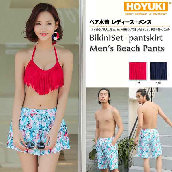 今回ご紹介するのは、ホユキ楽天市場店で2019年5月15日に購入した「あす楽 ペア水着 まとめ買いでお得!水着 メンズ トランクス+水着 レディース 送料無料 ホユキ カップルお揃い ビーチ水着/S/M/L/LL ビーチパンツ 3点セット バンドゥビキニ フリンジ」です。価格は5760円。カップルでお揃いが楽しめるペア水着で、メンズはトランクス、レディースはバンドゥビキニにフリンジ付きのトップスとショートパンツがセットになった3点セットという豪華な内容。急ぎの旅行にも嬉しい「あす楽」対応で、デザイン性と機能性を兼ね備えた商品です。