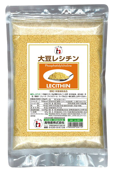 私が購入したのは、厳選素材で健康応援 寿物産さんの「大豆レシチン 250g 顆粒状 Soy Lecithin」です。価格は1858円でした。この商品は、大豆由来のレシチンを顆粒状にした健康食品で、特に注目すべきは「ホスファチジルコリン(PC)」という成分が含まれている点です。商品説明によると、記憶力や集中力に関わるとされる「ホスファチジルセリン(PS)」も、このPCから体内で生成されるとのこと。チャック袋に入っていて保存しやすく、今回は配送費上昇のため推奨されている通り2袋単位で注文しました。
