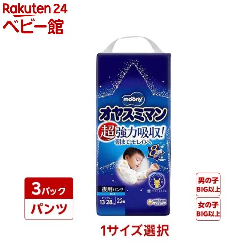 今回私が購入したのは、ムーニーから販売されている「オヤスミマン BIGサイズ以上」のおねしょパンツです。22枚入りが3パックセットになっており、合計66枚という大容量。楽天24 ベビー館という、ベビー用品から日用品まで幅広く取り扱うオンラインショップで購入しました。この商品は、成長期のお子さんの夜間のおねしょ対策に特化しており、通常の紙おむつでは吸収しきれない量の尿もしっかりキャッチしてくれる設計が特徴です。特にBIGサイズ以上は、体重が重くなり、体格が大きくなったお子さん向けに作られています。