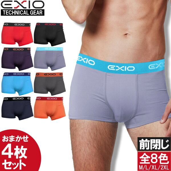 今回私が購入したのは、EXIO(エクシオ)というブランドの機能性アンダーウェア「おまかせ4枚セット」です。抗菌防臭、吸汗速乾、ストレッチといった高機能素材を使用しており、ローライズのボクサーパンツタイプ。前閉じ仕様で、Mから2XLまでの幅広いサイズ展開、そしてオールシーズン対応が特徴です。カラーは全8色の中からおまかせで4枚届くという、ちょっとしたワクワク感も楽しめる商品です。