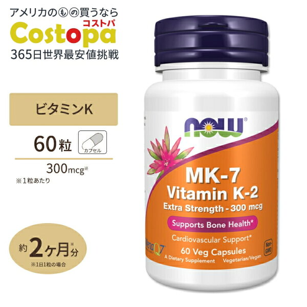 今回ご紹介するのは、健康食品の分野で世界的に信頼されている「NOW Foods(ナウフーズ)」が手掛ける「MK-7 ビタミンK2」サプリメントです。特に、iHerb公式で取り扱われている正規品であり、ビタミンK2の中でも吸収性に優れたメナキノン-7(MK-7)を1粒あたり300mcgとエクストラストレングスで配合しています。植物性ベジカプセルなので、ヴィーガンの方や動物性由来成分を避けたい方にも安心して選んでいただけます。1ボトルに60粒入っており、約2ヶ月分の健康サポートが期待できる商品です。
